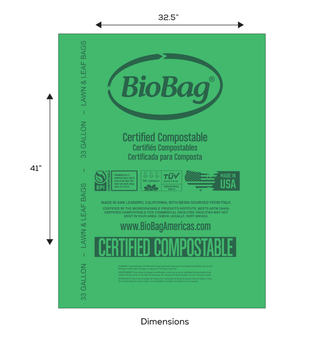 Biobag Lawn, Leaf & Yard Waste Bags are ideally used for the collection of lawn, grass, and other yard waste for municipal and community composting. Our Lawn, Leaf & Yard Waste Bags are sized equivalent to regular yard waste plastic bags. These bags breathe without leaking, which can reduce the weight of the bag at pick up because moisture can evaporate. Usage testing confirms that consumers significantly prefer Biobag® Lawn & Leaf Bags to paper bags for the collection of yard waste. Consumers like the fact that Biobags give, allowing more waste to be collected per bag. They also prefer bags made from renewable crops to either bags made from trees or petroleum. FOR BEST USE: Use within one year of purchase and store in a cool, dry place.