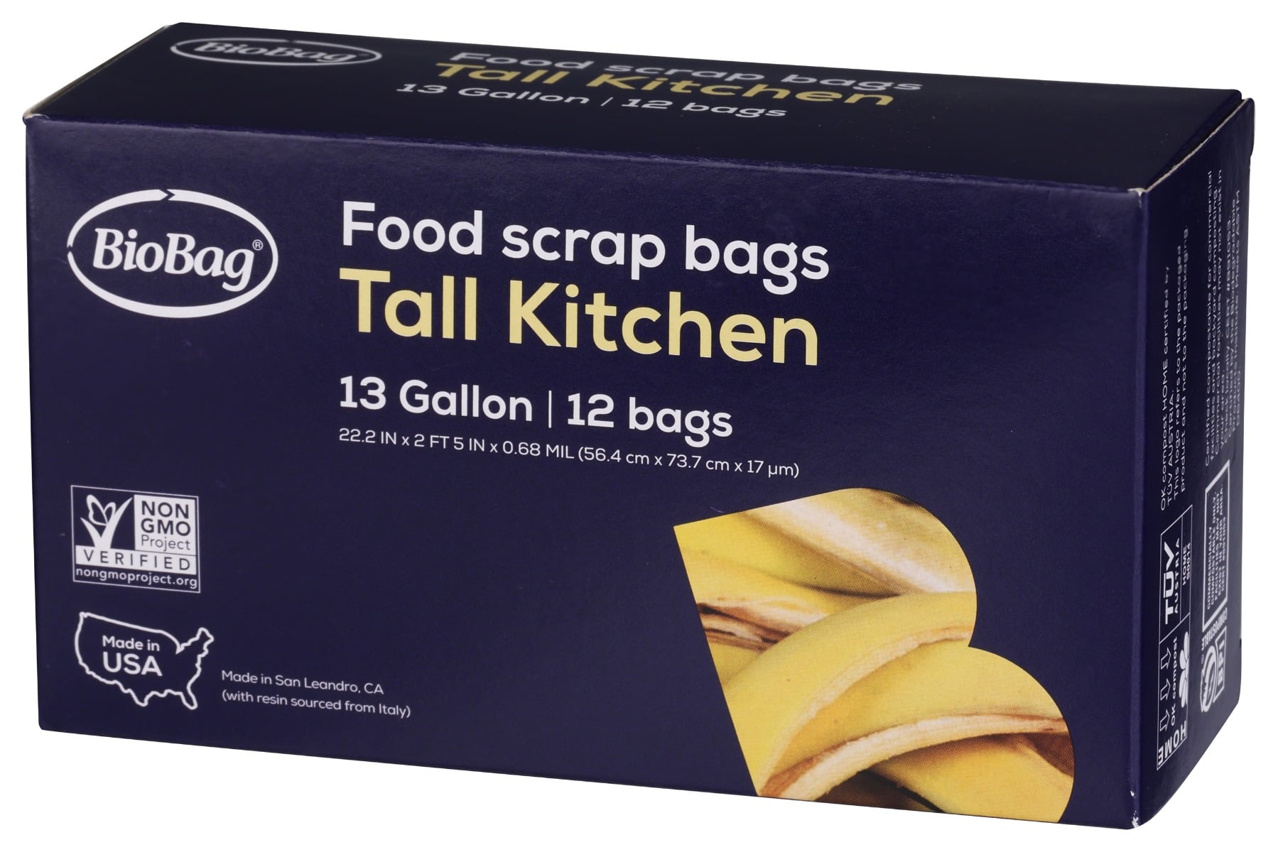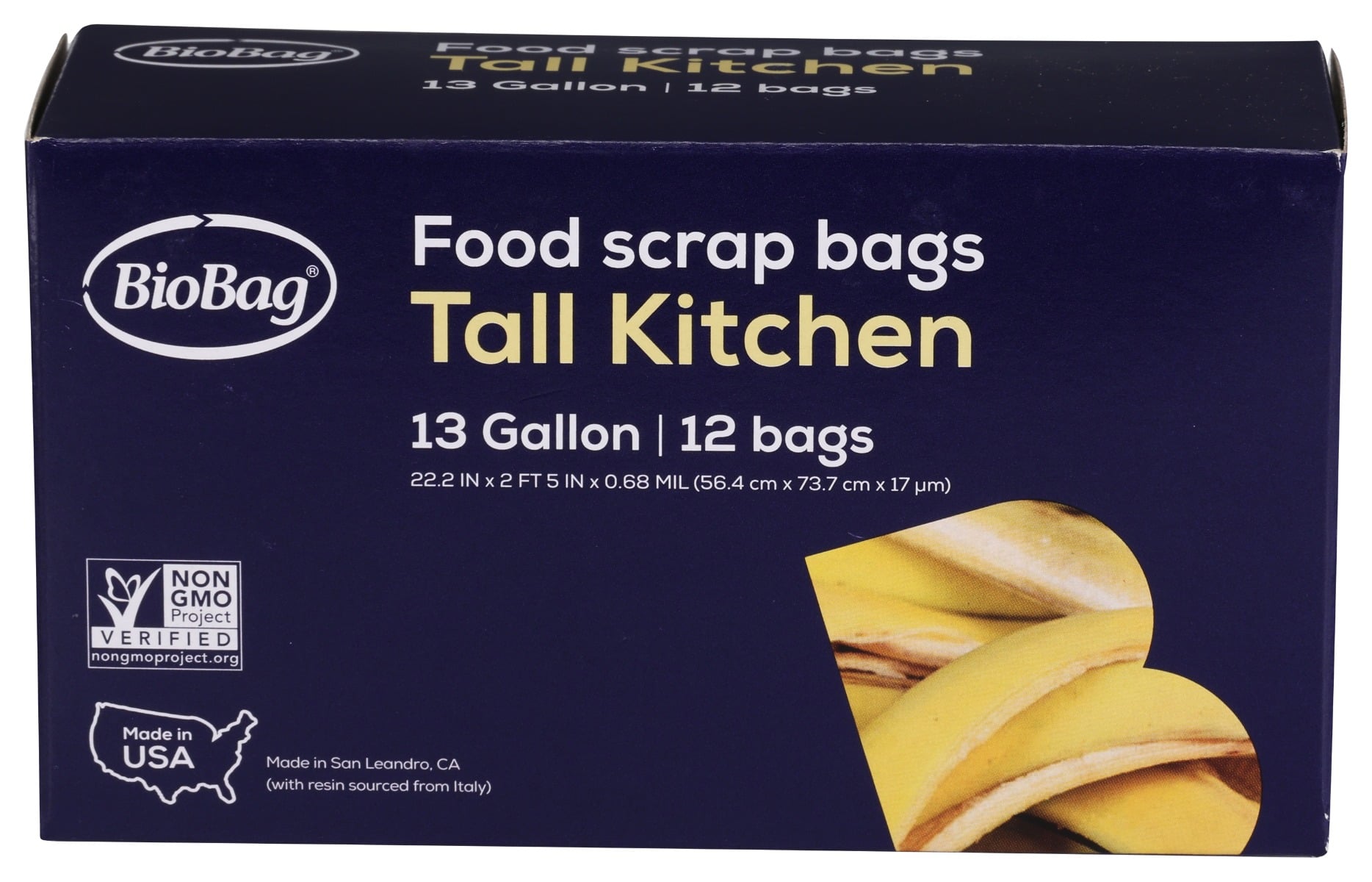 Biobag Tall Kitchen 13 Gallon Food Scrap Bags are sized equivalent to regular tall kitchen plastic bags and fit most kitchen waste cans. This sturdy bag is perfect for collecting food waste, paper, and other compostable packaging items. Our 13 Gallon size is also great for collecting outdoor organic waste from small gardening areas.